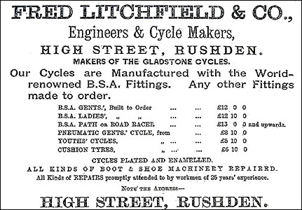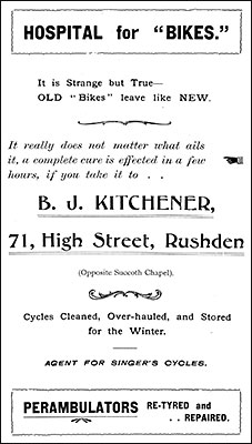 Machine Repairs, special parts to order. Cycle and Mangle Repairs, New Rollers fitted from 22/6 pair, Old Rollers re-surfaced, at W. M. Fletcher’s, 15 Irchester-road, Rushden.
