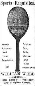 Born in 1850 at Dunstable, William Webb came to Wellingborough in about 1872 and in 1874 he married Mary Wagstaff, daughter of William and Sarah, of Higham Ferrers. They had three children, Fred, Frank and Charles at Wellingborough, but then moved to Higham Ferrers, where they had George, Elizabeth, William, Henry, Ellen and Ralph. William was a saddler and harness maker by trade.