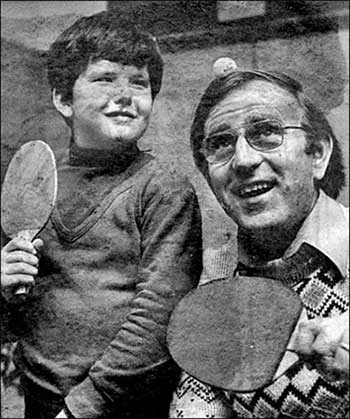 | Pupil Darren Pye, aged eight, obviously thinks that a games evening has gone to his head’s head, so to speak. Our picture was taken as he played table tennis with his headmaster, Mr. Bob Whitworth.