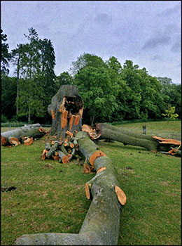 Safety barriers were placed in a cordon around the tree, but the following morning as the keeper was opening the park gates he heard a crash and felt a solid thump through his feet as another limb fell, crushing one of the barriers!