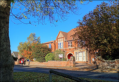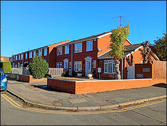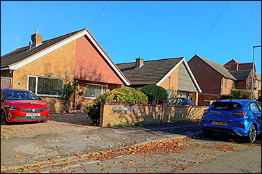 At the Oswald Road corner is an entrance into the cemetery and to Cemetery Lodge, the former residence for the cemetery caretaker, now called Spruce Lodge, numbered as 42 Harborough Way. This is now separated from the cemetery grounds - it has been extended and faces into Pightles Terrace opposite The Croft. |
