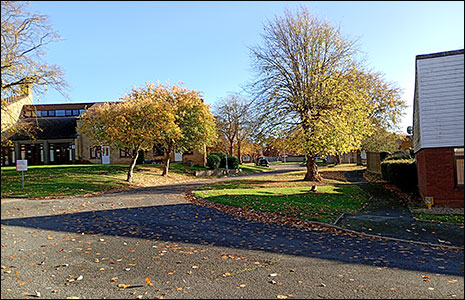 Near the top of the road is a block called Bates Lodge. This block looks onto the rear of another block called Pightles Walk. [see Pightles+White House Court]