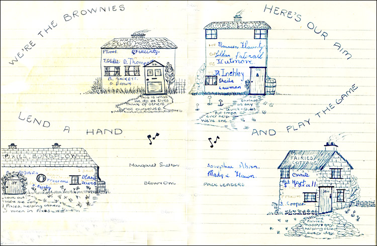 For our Thinking Day we arranged a short ceremony taken from the Guider, four Brownies representing the North South East and West. These characters brought a gift from their countries. Matches from ‘With a big Brownie Smile All over my face I mean to make friendships All over the place.’ On March 7 During Easter week, the Guides and Brownies held an “AT HOME” and the Guides gave a short sketch, also the Brownies, which was entitled “The Brown Mouse”. Those taking part were Maureen Flaunty, Eileen Linger, Christine White, Jean Stimpson, Pat Robinson, Pat Frost, Joan Fensome, Janet Cutmore and Jean Harvis. The proceeds were divided and we kept £3.7.6d towards our Garden Party Effort.