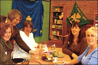 The final thing that made this possible was my fantastic Trefoil Guild Ladies. You can pick us out because we are wearing the Trefoil Guild scarf and they are doing all the work. Cransley Hospice is our chosen charity this year and they have made and donated all the cakes to increase the donation. For those of you who do not know the Trefoil Guild is for anyone over 18 who agrees with the principles of Guiding but is not able to help with running a unit. We have monthly meetings but we also have great fun. 5 of our Guild joined the County holiday to Waddow and it was really lovely - two of us even did grass sledging - quite amazing and we are planning a sub-camp at the County Centenary Camp so next year some of us will be camping. If you would like to know more about us please have a chat to one of us.