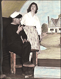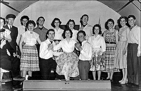 This year, with contrast in mind, Mr. Whelan came forward with "A Song for Jennie", which has an English village setting. The whole two-hour show is original and has been taken up with great enthusiasm by the young people of the estate. The little stage at the church hall has only one entrance, but is suffices for the ins and outs of the young squire, the school teacher, the haughty dame, the seaman with a past and various other country types.