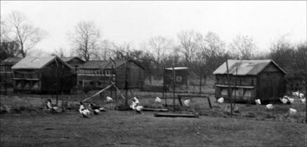 The chickens behind the bungalow where Mrs Strickland started her nursery school with her friend Susan in 1964.