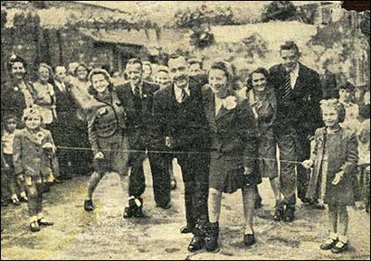 Tape is held by (left) Ann Robinson and (right) Moyra Simmons.