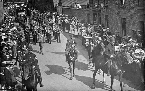 c1920s - Police Sargent Powell leads a parade along College Street. On the right is