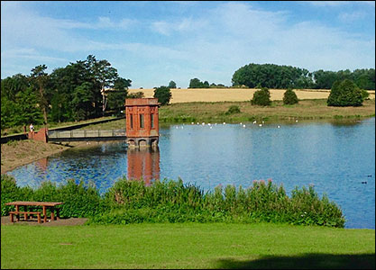 Sywell Country Park in July 2016, showing the water tower and the embankment still in place, over 100 years after they were constructed.