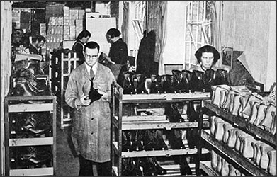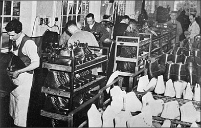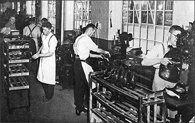 A new factory was built in 1898. Charles Groome was works manager in 1913. In 1928 the first St. Crispin football boot was produced. On 5th February 1945, the factory was destroyed by fire. The Society managed to continue until a new factory opened in March the following year and began to rebuild the trade again.