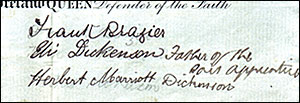 Frank Brazier took Herbert Marriott Dickenson as his apprentice in 1892 for a term of 5 years.