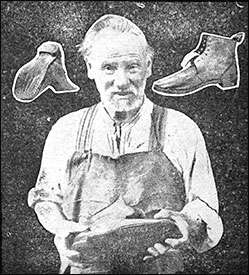 This photograph will prove interesting to the older bootmakers amongst us. The boots were a pair of Army boots made in 1872 by Mr. Lockie who is seen holding one of them for Messrs. Nichols and Son of Raunds, and were rejected on account of a flaw in the insole. Mr. Lockie then lived at Ringstead and several years afterwards when he removed to Kettering (he now lives in Dryden Street) he was given an opportunity of purchasing them.