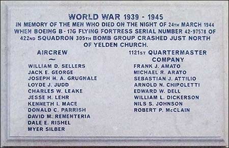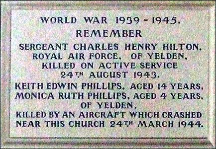 On June 30th 2009, a memorial was erected inside the church, to the 19 Americans who died in the plane crash on March 24th 1944. A bomber with eleven crew, leading a mission to Frankfurt, crashed onto a Nissen hut where eight soldiers were sleeping, and a farm where two children also died.