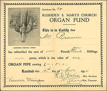 Messrs. Walker's are noted for their many fine Church Organs of distinctive quality with refined tone, and the new organ in Rushden Parish Church, although not as big as many of this firm's installations, will be a worthy example of a resourceful and adequate instrument of the highest standard.