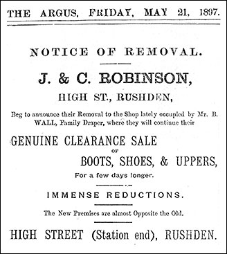 John and Charles Robinson, boot dealers, already had stores in Wellingborough and Kettering by 1894 when we find them trading at Rushden, somewhere near Tailby & Putnam's shop at 129 High Street.