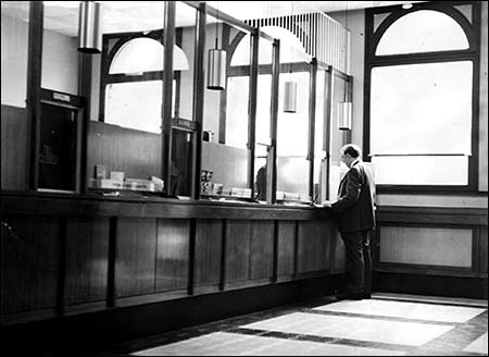 Above the bank, there are two storeys of residential accommodation, with access from the rear, and at one time the Bank Manager lived "over the shop". Mr Allen Goulsbra was the last manager to have lived there. (I am also told that thereafter other bank employees lived there too, as recently as two or three years ago.)