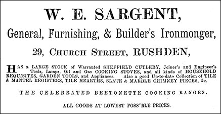 A meeting of the creditors of Mr. W. E. Sargent, ironmonger, High-street, Rushden, was held at Kettering, on Monday. The statement of affairs showed that the sum due to unsecured creditors was £227/18/3, assets £53/15/6, deficiency £174/2/9. The stock-in-trade was put at £107/13/3, book debts £65/6/8, plant, fixtures, and fittings £4, total £176/19/11, from which was deducted £123/4/5 for rent, etc.