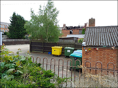 The first picture shows the rear section of the works had suffered a roof fire, and the second picture shows the view from the rear, looking across the play ground area used by Kiddi Caru day nursery in Park Road.
