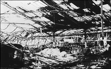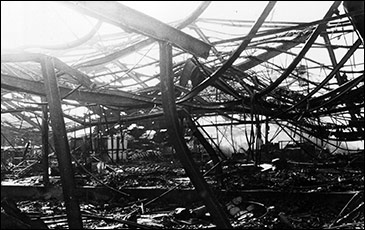 It will be seen from these times that the initial outbreak was extremely rapid and when the first attendance arrived, practically the whole of this building was already involved.