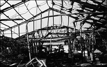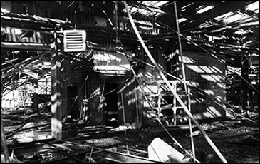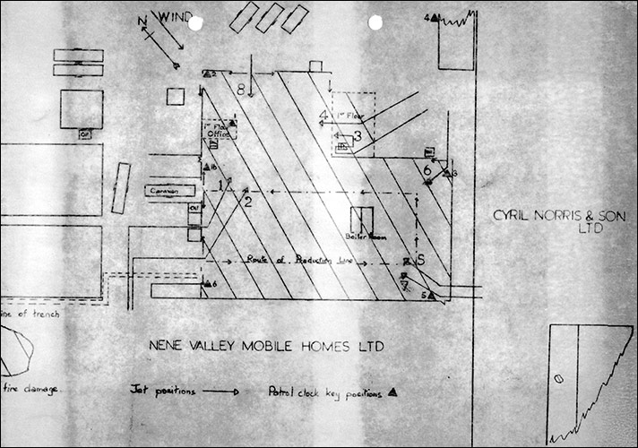 Neighbouring Engineering Works some 90' 0" to the South was affected by flying brands. One square foot of fiberglass roof light being destroyed by fire.
