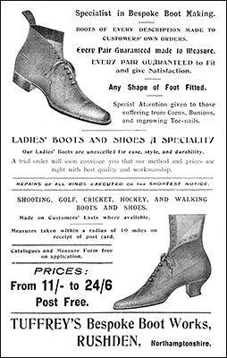 Tuffrey's Bespoke Boots had small ads on several pages but the same one repeated.