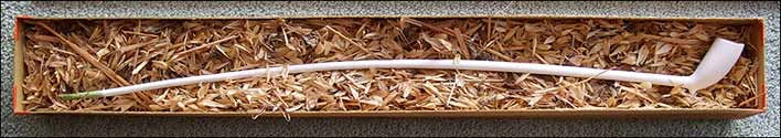 This pipe was referred to as a churchwarden's pipe. The box contained 4 pipes, each 20 inches long, packed in chaff. Made by Wm Southorn & Co, of Salop - Celebrated Best Broseley 20in Smoke Room Pipe - 1851 Great Exhibition.