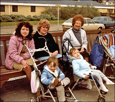 Sister Sally Childs (left) Alison, and Pam Wheatley with Heather, late 1970s