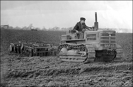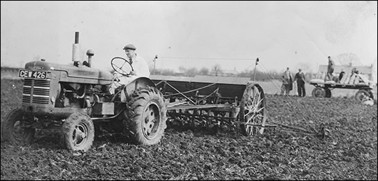 Mechanical Blitz on No-Horse Farm - Big Effort To Make Up For Lost Time A mechanical procession invaded the sweet-smelling land of a Rushden farm on Monday morning, when the farmer and his two motor-minded sons set out to make up for lost time. Starting at seven o'clockwhich by standard Greenwich reckoning would be 5 a.m.the day's programme was mapped out to continue until 8.30 in the evening. After 52 years in farming Mr. W. G. Holt of Higham Park, could not recall a worse winter that the one which had now passed, and reckoned he was six weeks behind his normal schedule. After four hours' work, however, he jumped cheerfully from a machine, ran his hand through a tub of peas, and declared with a smile: "The season's late, but if it comes right we shall catch up". "I'll take these peas," said Mabel, the Land Girl, and with an easy swing over the rough earth she bore them away to the disc drill from which she had just alighted. The Shaggy dog barked with delight. The Holts have two farms on the Bedford side of Rushden, and the land on both is very heavy. They knew it would pay them to bide their time while farmers on a lighter soil were getting into action after the big hold up, and for weeks they contented themselves with preparations and general repairs and constructional work. They made some new bull pens, for instance, and the gales had left them with much damage to mend. Over two or three bays of a big Dutch barn the roof had been stripped away like paper. Offensive Begins Most of the mechanical equipment is housed at Higham Park, but the spring offensive broke out at Bencroft Grange, threequarters of a mile away on the other side of the road. Here there are 138 acres, standing so high that in the wild weather of a few weeks back the snow swept up into huge drifts and even the hedges were lost to view. On Monday, however, the scene, like the scent of the earth, was pleasant and rich with promise. Mr. W. G. Holt pointed to five of his mechanical units purring about in a widespread field of endeavour, and indicated the hedge which separated Northants from Bedfordshire. He spoke of his 32 years of farming at Rushden, and how at the age of 12 he left school at his native Holdenby to work on his father's farmstill occupied by his brother. "I can't see that there will be a lot of difference later on," he said. "It all depends on what sort of summer and autumn we get. I don't know how we shall get on with the potatoes, however." |