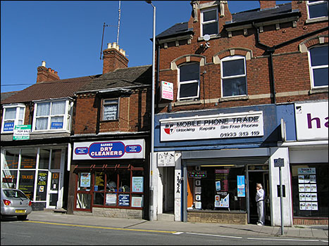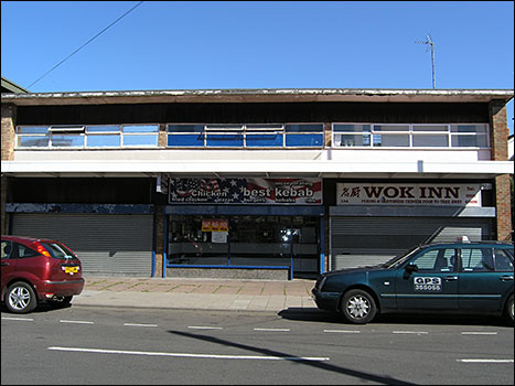 This side concludes with a typical 1950's bock of three units, square and flat roofed and a new industrial unit for a builders’ merchants, beyond.