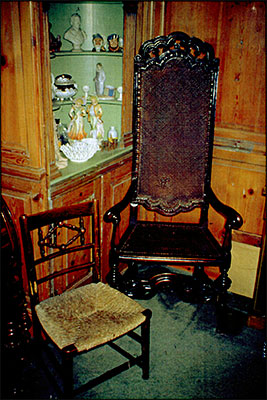 February 5th 2010 To continue we move into the front room and continue in the 'Georgian' period, sort of 1750's, this room had two shell cupboards in it, the one next to the fireplace over a small cupboard all part of the same structure, this 'shell' made with thin sheets of Oak divided by flat beadings with overlough edging into five sections finished in a shell pattern, the whole design rising from a semi-circular shape at its base, it had been enclosed by a pair of doors, possibly glazed, originally painted a Turquoise Blue, some of which remains, highlighted with Gold Leaf, in its position on the ground floor at Northampton it appeared to have been separated from the first floor panelled room which had been painted the same colour though the later had been repainted many times ending up in Cream. On the opposite side of the room adjacent to the front door I put a second shell cupboard, this one from Parson's shop in Duck Street, a totally different construction, the shell formed like a chocolate orange from thirty five segments of various sizes, very attractive from the front but like so many antique pieces very rough on the reverse, held together with rabbit glue and blacksmith's nails. This was one of my first acquisitions from Ken Impey, demolition contractor; I had always wanted a shell cupboard and to get two I always thought was very lucky, they are not that common. |