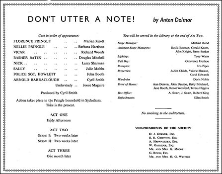 Despite some spirited acting from a hard-working cast Rushden Amateur Dramatic Society’s production last night of Anton Delmar’s “Don’t Utter a Note”, never got off the ground.