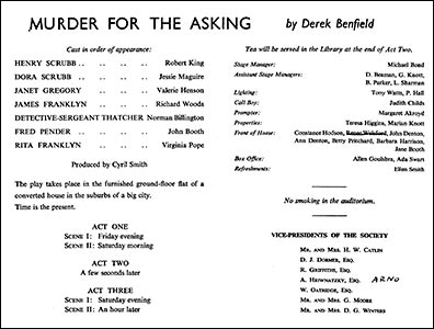 Produced by Cyril Smith, “Murder For the Asking”, continues tonight and tomorrow night.