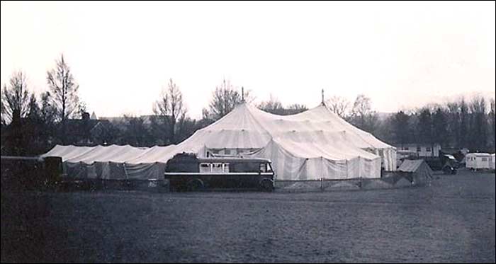 The cafe (visible in the distance to the right of the big top) stood on the old tank base by the brook.