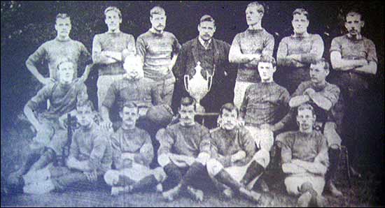 The photo published in your paper this week is of the Rushden Rugby Football Club, taken by S. Powell at the Rectory Gardens, Rushden, soon after they won the Northamptonshire Rugby Challenge Cup, 1890-91.