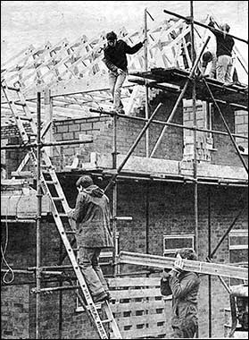 A team of volunteers led by John Yorke, Dave Needham, Jim and David Broderick, Paul Perkins, and a group of scouts have erected the roof timbers, ready for the tiling which is scheduled for this weekend.