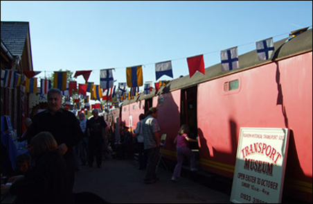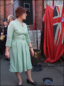 On October 20th & 21st 2007 Rushden Historical Transport Society held a '40s weekend. The weather was perfect, blue sky and sunshine, and the turnout was good. Poppies for Remembrance Day were on sale and donations were to be divided between the British Legion and the Naval Association. Visitors were encouraged to turn up in 1940's dress and several were in military uniforms. Entertainment was by "The Spitfires" - two sisters and friend - who dressed in fashions of those days and ran a short fashion show, and who also sang songs from the '40s. The station members did a superb job in setting the scene with old vehicles and they set a display of air raid memorabillia and also dug a hole to lay an "unexploded bomb" setting. The bar was open for refreshment and the dish of the day was bangers and mash. A good time was had by all.