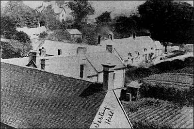 View across the roof of the Vestry Hall - built in 1874 - with some of the Glebe allotment land right - to the Rectory (top) c1890.