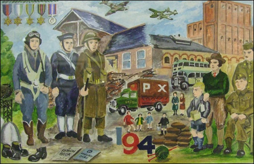 PICTURE OF THE JOHN WHITE SPITFIRE. Painted by Keith Hill, the Rushden artist, with work in many locations, both here and abroad and Official Artist to the U.S. 8th Airforce Memorial Museum Foundation. |