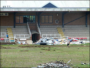 The final kick on the shins for the Rushden & Diamonds faithful came when arch foes the "Poppies" from Kettering fancied getting their hands on Nene Park; this was definitely not a match made in heaven. They went from bad to worse, and also left the football stadium, but not without egg on their faces in 2012. After remaining empty for about five years the facility was deemed for demolition! The then Conservative MP for Corby and East Northamptonshire, Tom Pursglove, revealed that the demolition of Nene Park was to be temporarily halted while a meeting between himself, the site's owner and other interested parties was arranged. The bulldozers were about to move onto the site in Irthlingborough in February of 2017, after the owners said it was a fire hazard. Mr Pursglove had raised the issue of the stadium, which has been empty since 2012, in the Commons and also wrote to East Northamptonshire Council. In the reply from the authority the chief executive, Mr David Oliver, said he had spoken to the owner of Nene Park, Keith Cousins, and he had agreed to a meeting and the work on the site would be halted until then. Mr Oliver also said the council had been working with AFC Rushden & Diamonds to find a permanent home for the club for the following season. As we wrote this article they had played their final home matches in Wellingborough at the Dog and Duck. Demolition finally started at the end of February on the 28th, 2017; this was undertaken by HDC from Wellington, Herefordshire. It would seem that the four floodlight pylons which had stood in each corner of the ground had been removed prior to any other work being carried out. Some supporters of AFC Diamonds were permitted to remove seating and a team dug out furniture in mid February, 2017. We also heard in February that AFC Rushden & Diamonds were to make a permanent return home to Hayden Road in Rushden. This would be on a ground sharing basis with Rushden and Higham Utd, members voted overwhelmingly in favour of the move. In the meantime AFC Rushden & Diamonds would have to play their home games over at Kempston; this temporary move was needed to allow ground improvements to be made at Hayden Road in Rushden. First to go at Nene Park was the Dale Roberts Terrace, formerly the "Peter De Bank" Terrace, next to the A6 road. It was estimated that it would take about 4 months to complete the work. By the end of March, 2017 there were was just the "AirWair" stand awaiting its fate. This was being levelled at the back end of April, 2017, and ironically the last corner to be flattened was one with flags displaying a player kicking a ball, this was next to the Nene Park Health Clinic. So all the euphoria has gone, and it is a sad sight to witness the final blow of the whistle down at Nene Park. There certainly was much interest in the demolition gangs, and I was not alone taking the final shots down at the ground that was one of the best in the football league. AFC Rushden & Diamonds had been ground sharing with the "Doughboys" down at the Dog and Duck in Wellingborough for five years. Now in 2017 they are managed by former Hayden Road favourite Andy Peaks. So Rushden are coming back home, yes it has all gone full circle on what was to be a dream, and no doubt fans will always have personal and very mixed feelings to draw on, as who won, or lost the most down at Nene Park over the years? |