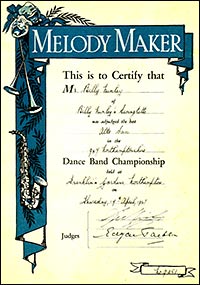 Billy taught himself to play the piano, guitar and banjo. Aged just 21, he won the 'best Alto Sax' in a Dance Band Competition held at Franklin's Gardens, Northampton on 17th April 1947. He composed some of his own and arranged other music for his dance band, "Billy Nunley's Swingtette".