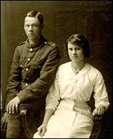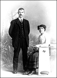 Yet as the eldest girl who had to take care of the last born baby when there was a new arrival I was concerned as I grew up. When the eighth baby arrived I ask Mother if there would be any more and mother replied "I hope not dear". Yet another eight arrived. I think that it was my generation that began to question women's role and to want women to have a better life than household drudgery and to be totally submissive to men. I think that this is what Mother wanted but she belonged to the old ways and had to put up with these things without question. When mother had another baby we older children would be sleeping upstairs. Three of us in the one bed with the sixteen months old baby, the last one born, sleeping at the foot of our bed. I can remember one birth occurring whilst Father was in hospital having an operation for his varicose veins. Mrs. Darnell a neighbour had to cook our dinner, which was "bake-tators"*. Mother sat up in bed with the new baby and cut and dished us out our dinners. There were four children then so it would be about 1905 time. Also women then did not get up until ten days after a pregnancy. So good neighbours were essential. Mrs. Darnell was always a good friend to Mother a sympathetic ear, help when needed and discrete. [*Baked potatoes - cooked in their skins or 'jackets'] Father's "Problem" Father in those early days was a heavy 'drinker'. This was the principle cause of all our troubles. Women accepted men's faults in those days without question. He was a handsewn man and as such he earned good money because he was a very skilled craft. One often speculates whether the cause was marriage at an early age and the responsibility of having a large family - was 'drink' his escape? .