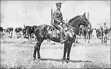 There was a celebration in the village to celebrate Queen Victoria's jubilee. There were a big farm close to where we lived in the village there and he’d got one of these great big barns. They cleaned this barn out and the village had a real party there. Yes, on Queen Victoria’s day. They hadn’t got much music, there might have been one or two people sawing about on a fiddle, I don’t know. When I was about 20 I joined the Beds Yeomanry for four years and we used to have a camp every year. Then when the war broke out I’d finished my 4 years in the Yeomanry so I left them. But they were a few men short and they asked a lot of the other fellas what were still in it if they know of an old member who was willing to join. So they sent me a wire, I can remember that wire now as well as can be 'vacancy in squadron report at once'. I was at Great Addington, I didn’t stop, I got straight on my bike and I biked all the way to Godmanchester and that’s where I joined up. I was with the Beds Yeomanry until the year before the war finished, they were broken up and we transferred into the 19th Hussars, so I finished my time in the 19th Hussars. I was taught how to shoe horses when I joined the Army. We shoed 2 feet at a time, there’s his hind foot, there’s his front foot. The horse would be leaning on you, yes, you see he’d be got the weight on that side. It were only done as tomfoolery and a lot of folks said it couldn’t be done. I said well I’m got a picture that shows you it can be done. That was taken down at Stansted. That had been about early 1915 because we went out to France in early ’15, so that would be just after Christmas.