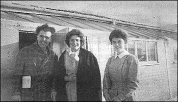 One of Dorothy's pictures shows the little train chugging along, taken from the now-demolished nurses' home, and another shows a trio standing outside Denbigh Ward. One of them, fellow student nurse Angela Williams, is holding an icicle two feet long. "She was a friend although I have no idea where she is now. She went to Canada, and then to Australia."