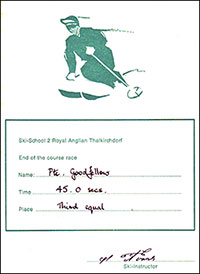 The many camps he attended with me and others of the Movement, were memorable, and I can associate memories of him which will stay with me for a very long time, such as wrestling with others to see who was going to be thrown in an icy cold mountain stream at Kanderstag, Switzerland, or building a sledge for racing at Everdon camp, showing his sun-burnt body until it became so red from the sun that he had to put on a T-shirt. Being up to his knees in mud while on reception staff at the second Everdon Camp when the Chief Scout at that time, visited the County Camp, hikes in the Peak District on numerous occasions, or walking in the Berwyns and Snowdonia, or just pitching marquees!