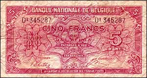 Here I am once again honey, this time to close my letter. In this letter I am enclosing 2 more keepsakes. A 5 franc note from Belgium & in English money it is worth 7d. & En Gulden which means one Guilder & in English money it is worth 1s.10½d. This last note is from Holland & you will see the Queen’s photo on the front. We are paid in this money now & we get 12 Guildens per week which is roughly a pound. Well honey, when we were at Brussels I bought you 2 undersets & some silk stockings but I can’t send them as we are only allowed to send 30/- worth of stuff home & so again I cannot find the time, so honey I am keeping them as best I can in my kit bag & I hope to bring them home with me. So here’s hoping they keep alright. They cost me 800 francs , roughly £4 & while we are in the Belgium capital we drew quite a lot of pay as we hadn’t had much for months. I meant to tell you in my previous letter but I forgot. Well my sweet I guess this is all for today so once more, Cheerio my sweet. Look after yourself, God Bless you always, I love you.
