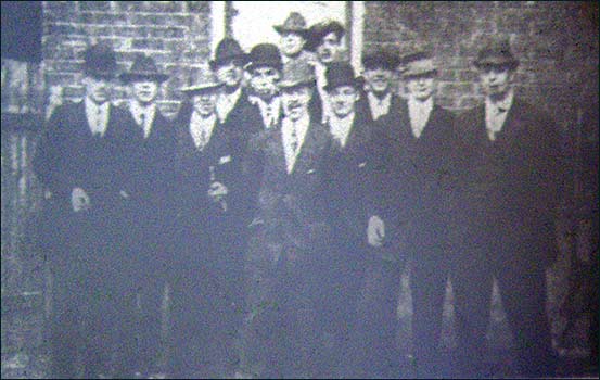 According to our correspondent, Edgar Drage is a Trade Union official, Fred Lickerish a cleaner and presser, Sid George a shoe-foreman, Arthur Linnitt a commissionaire at a bank, Herbert Turney a leather goods foreman, and Walter Stapleton a fancy leather worker. Others are employed in the shoe trade. Mr. Turney resides at the house where the photograph was taken.
