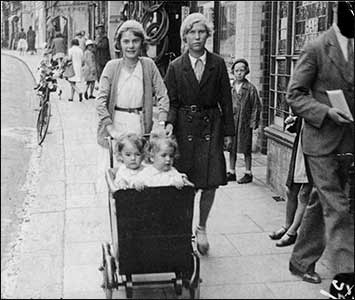 Marion's grandchildren Margaret & Mavis in the pram are pushed by her daughter Clarice Yorke 1933