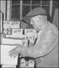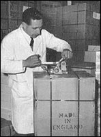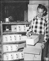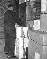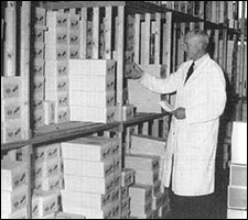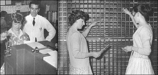 On the left the machine at work checking weekly sales figures and on the right the stock-card storage files