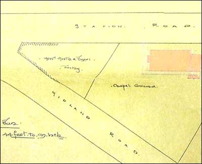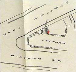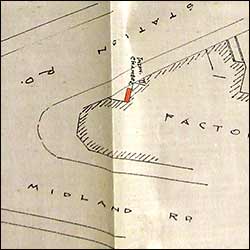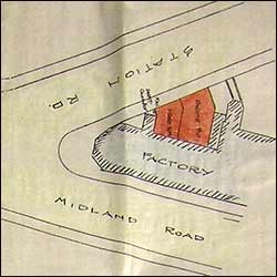 Right: Austin & Bond's factory at the corner of Station Road & Midland Road and the extent of the Chapel Ground - plan |