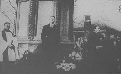 For some time before the service commenced, the crowd slowly gathered and wreaths were laid at the base of the Memorial, and shortly after half-past ten the congregation crowded the footpath and road in front of the Green and many had a vantage point in the churchyard overlooking the scene.
